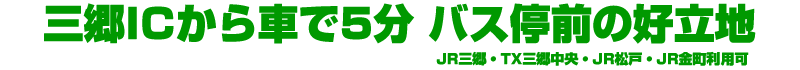 都心から30分程度のアクセスの首都高速6号線三郷JCTから車で5分。