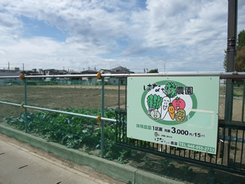 農園のとなりはコンビニエンスストア。家族連れでの農作業も安心の立地条件。